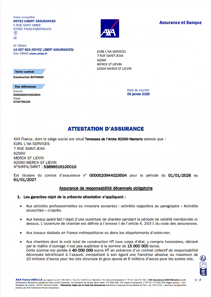 ASSURANCE RESPONSABILITE CIVILE ET DECENNALE